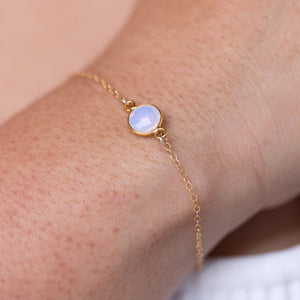 Our gemstone bracelets are designed with dainty 14k gold-plated wire and long lasting 14k gold-filled end clasps. Our gold-plated wire features a 5x micron thick plating making it durable, hypoallergenic, and safe for sensitive skin. 14k gold-plated items are prone to losing their gold-plating over time. Since these pieces have some gold-plated elements we suggest avoiding contact with water.