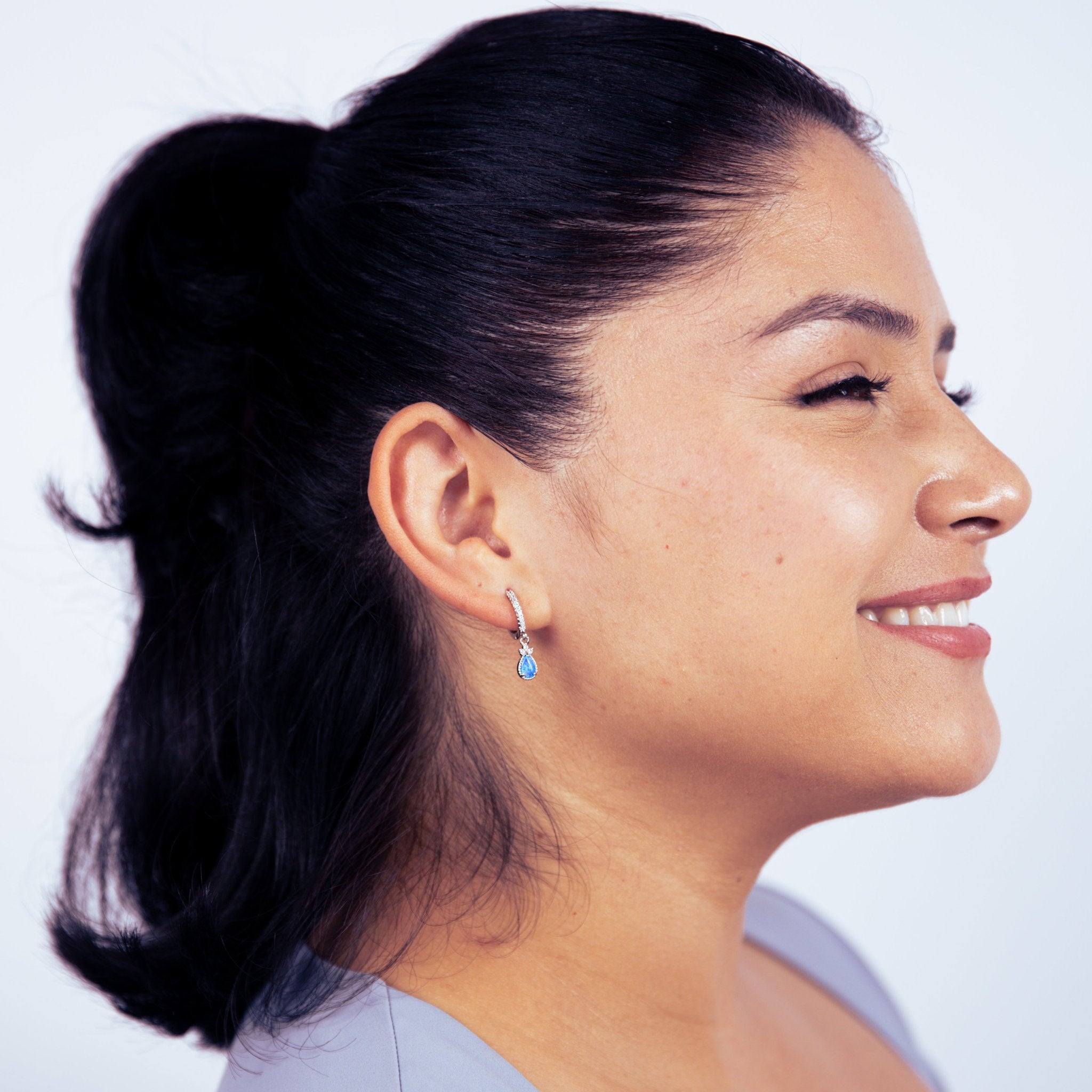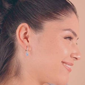 Blue Opal Silver Cubic Huggie
