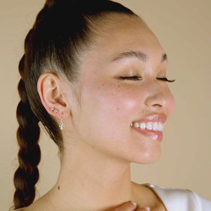 If you can only wear solid gold, you can also wear our 14k gold-filled earring studs. Hypoallergenic and safe for the most sensitive skin.  Plus, the metal is tarnish resistant so earrings will keep the solid 14k gold layer without fading wear after wear.
